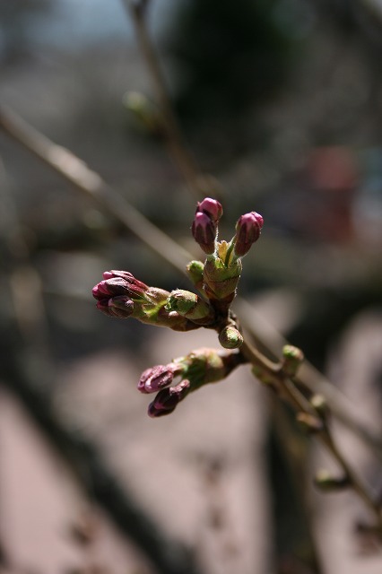 ややひんやりとした午前の風が心地よく感じて、この分ではの期待もむなし、つぼみは微妙な変化を見せただけ。思わず口をついて出たのが廉太郎(お正月)と夢二(宵待ち草)の一節とは、「定点」も潮時? 日差しをたっぷり浴びてこの報告を書いているわが身の背中がつぼみだったらと思う。壁際の花はそよぐ姿も力強く既に春を楽しんでいます。日和山全山赤味を増してきたことは確かです。