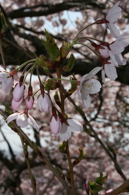 どういうはずみか「世の中は三日見ぬ間の桜かな」―という句を思い出し、先の定点終了宣言も中途半端だったなあと日和山に登ってみました。お目当ての木はすっかり満開でした。他の木々も「見ごろは週末ですよ」と花を競いだしていました。待ちに待った分、じっくり楽しみたいものですが、句の通り桜は桜と思った方がいいのでしょう。