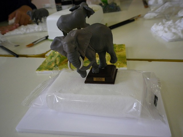 ゾウのフィギュアに何重にも色を重ねていた園児の作品は