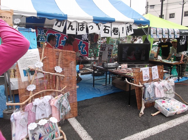 その中で、いつも当協議会に連絡をくださる「平塚青年会議所」の方から、今回の七夕祭りで、石巻のお母さん達が作っているグッズの販売も行いたいという連絡を頂き、お母さん達のグッズ(8団体)+石ノ森漫画館のグッズの販売もして下さることになりました。そのお礼とお手伝いをかねて、平塚に行ってまいりました。