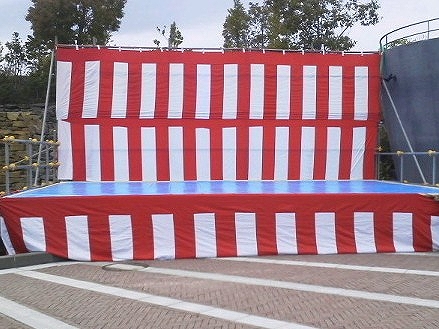 いかにも ”大漁まつり” らしいド派手な紅白の幕が施され、